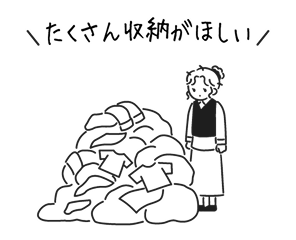 保管場所がない。 - 物が多くて家がすぐ散らかる。